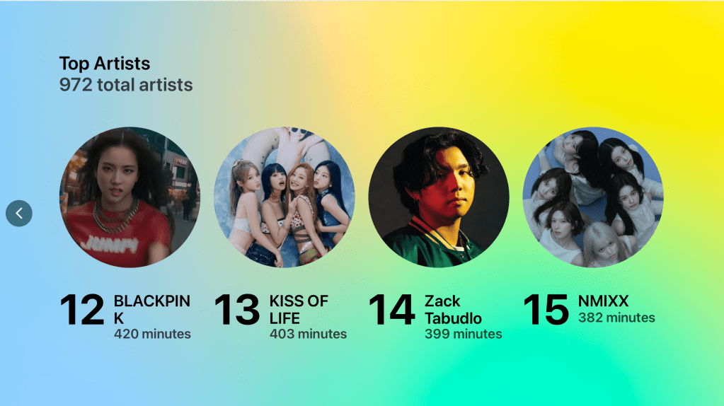 Blackpink being at 12 is deceiving. Although the group itself didn’t get that much airplay in 2025, the members individually were being played on a regular basis. With a album anticipated in 2026, it’s safe to say that they will shoot up the chart next year.